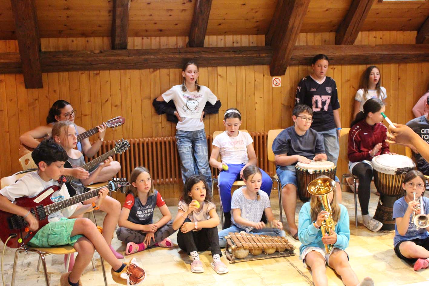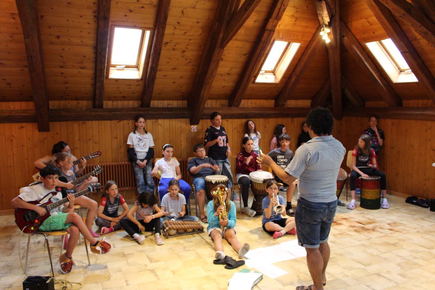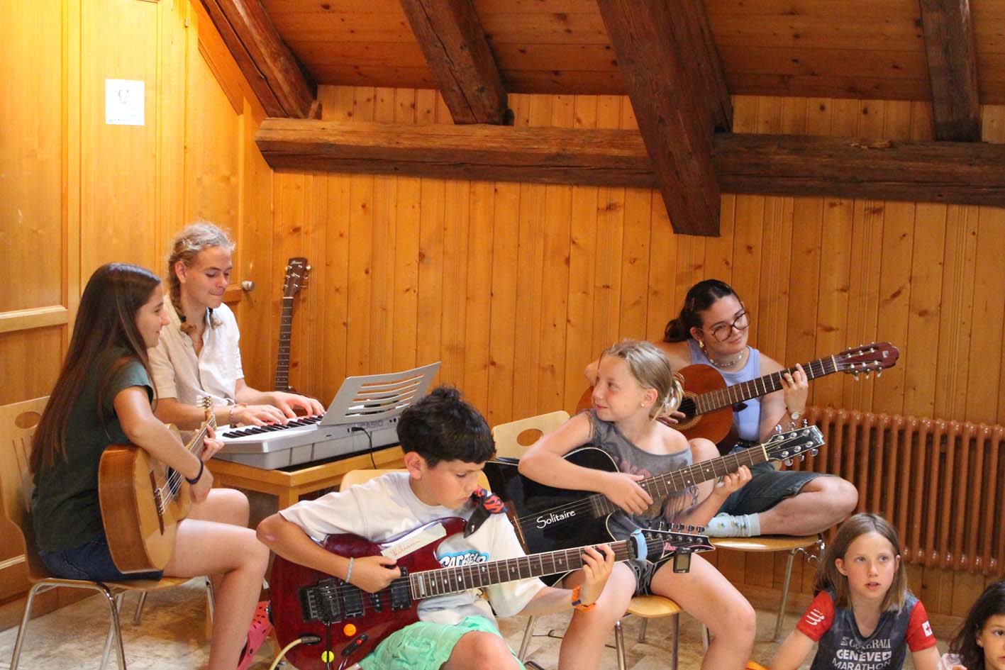 Pendant une semaine en immersion totale, le camp La musique est bonne a fait vibrer les cœurs et les tympans ! Au programme : découverte d’instruments venus d’ici et d’ailleurs, ateliers en petits groupes pour chanter, danser, et même créer une véritable pièce de théâtre musicale – bruitages et musique originaux compris !
